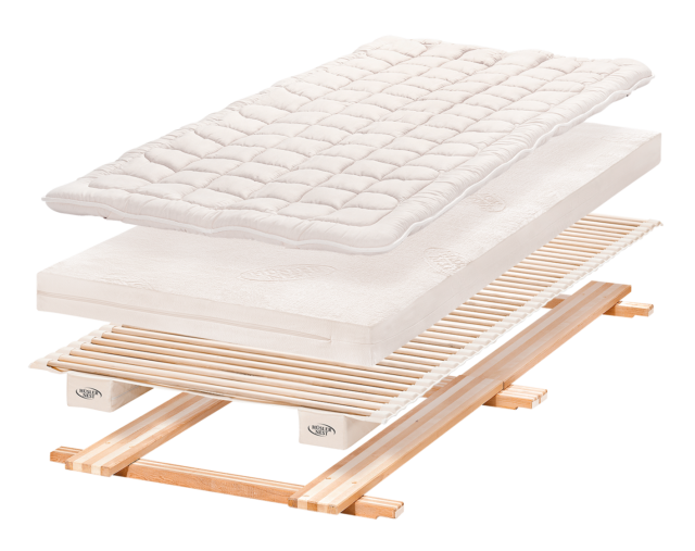 Wir bieten Ihnen perfekt auf das Hüsler Nest abgestimmte Bettgestelle aus Massivholz an, die zu 100 Prozent unserer Philosophie entsprechen. Natürlich passt ein Hüsler Nest auch in jedes andere von Ihnen bevorzugte Bettgestell.